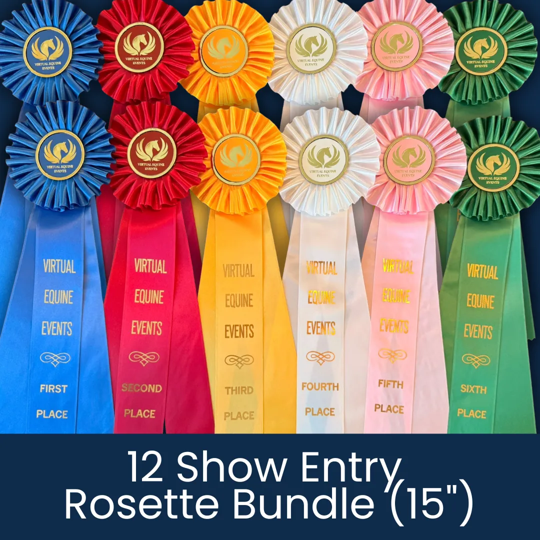Enter Virtual Equine Events with ease by purchasing a 12 Show Entry Ribbon or Rosette Bundle. This bundle provides 12 entry credits that can be used to submit classes in our virtual shows .